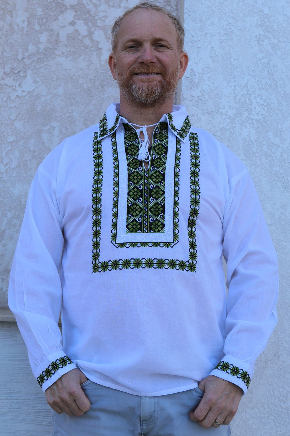 Cămașă tradiţională bărbați brodată la maşină; material pânză de bumbac.