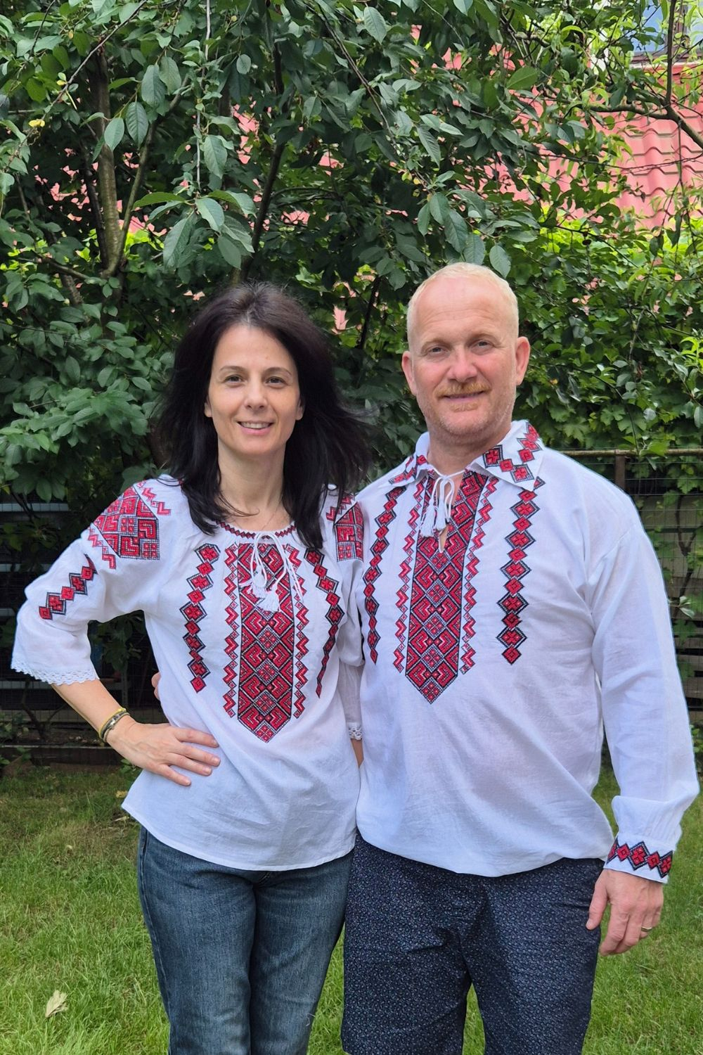 Setul contine o camasa traditionala barbati si o ie dama cu acelasi tip si culoare a broderiei.