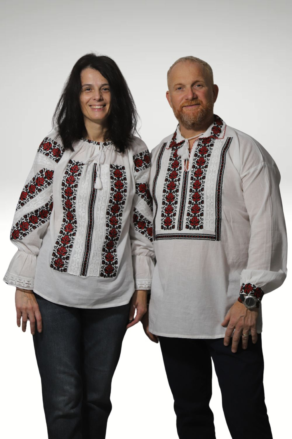 Setul contine o camasa traditionala barbati si o ie dama cu acelasi tip si culoare a broderiei.