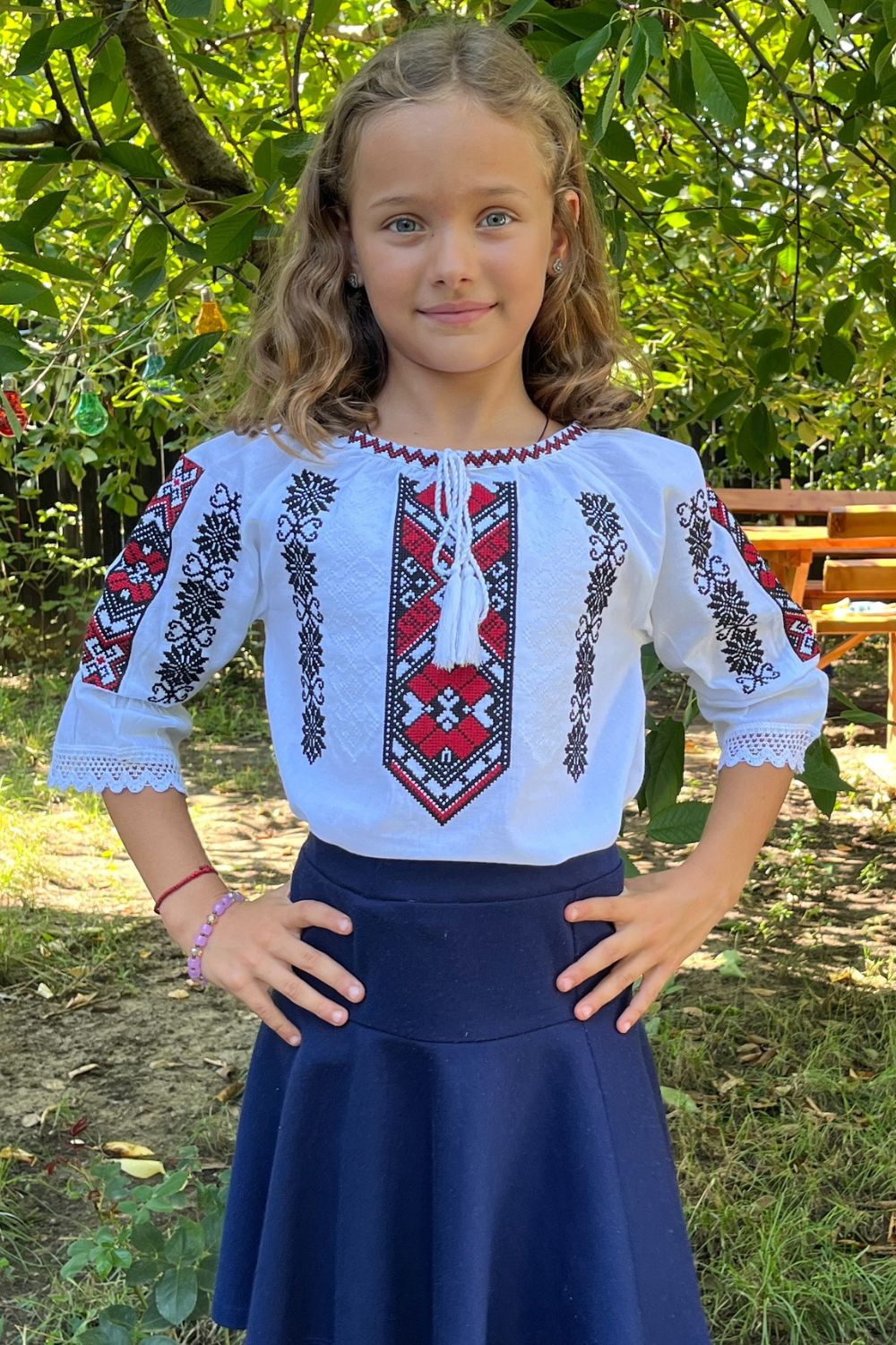 Setul conține  o ie de damă și o ie de băiat și o ie de fetiță toate aceeași broderie.