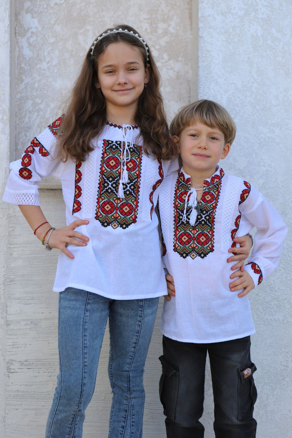 Setul este format din ia de fetiță si cea de băiat, ambele aceeasi broderie.