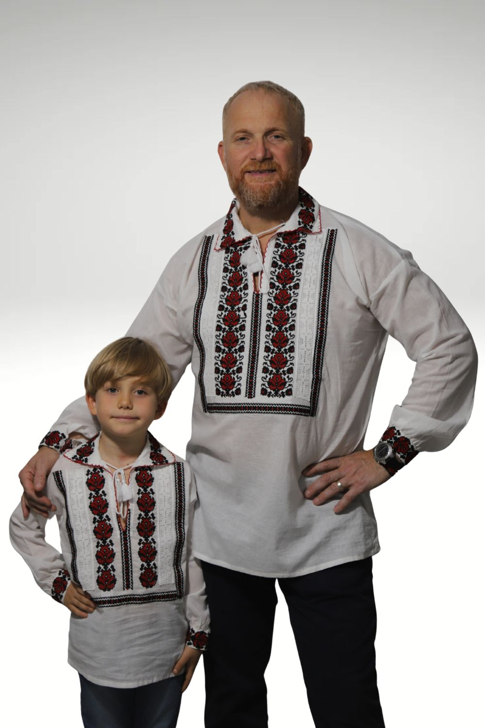 Setul este format din ia de bărbat si cea de fetită, ambele aceeasi broderie.
