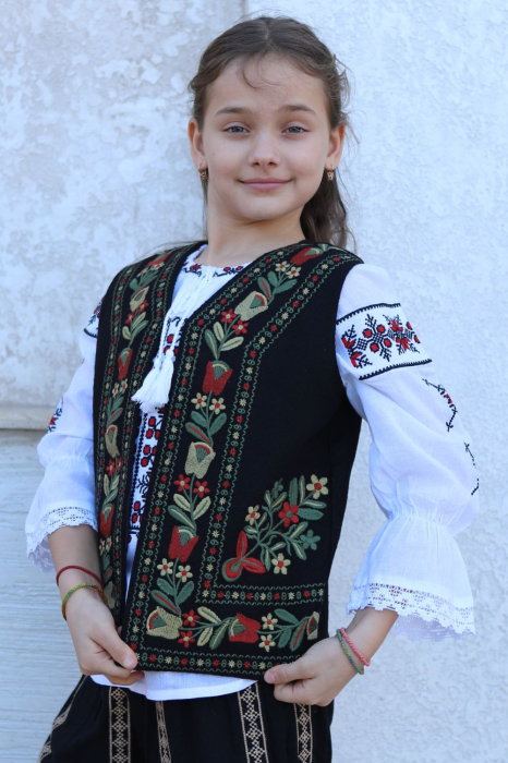 Vesta traditionala copii Marta broderie bej